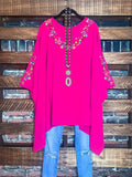 PRETTY PERFECTION FUCHSIA EMBROIDERED OVERSIZED TUNIC