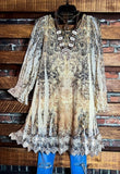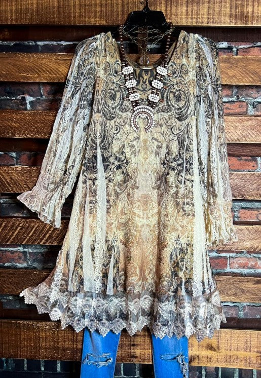 SANDALWOOD STUNNING LACE DRESS TUNIC MOCHA & TAUPE OLIVE