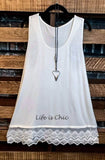 SWEETER THAN HONEY LACE SLIP DRESS EXTENDER TOP CAMI IN WHITE