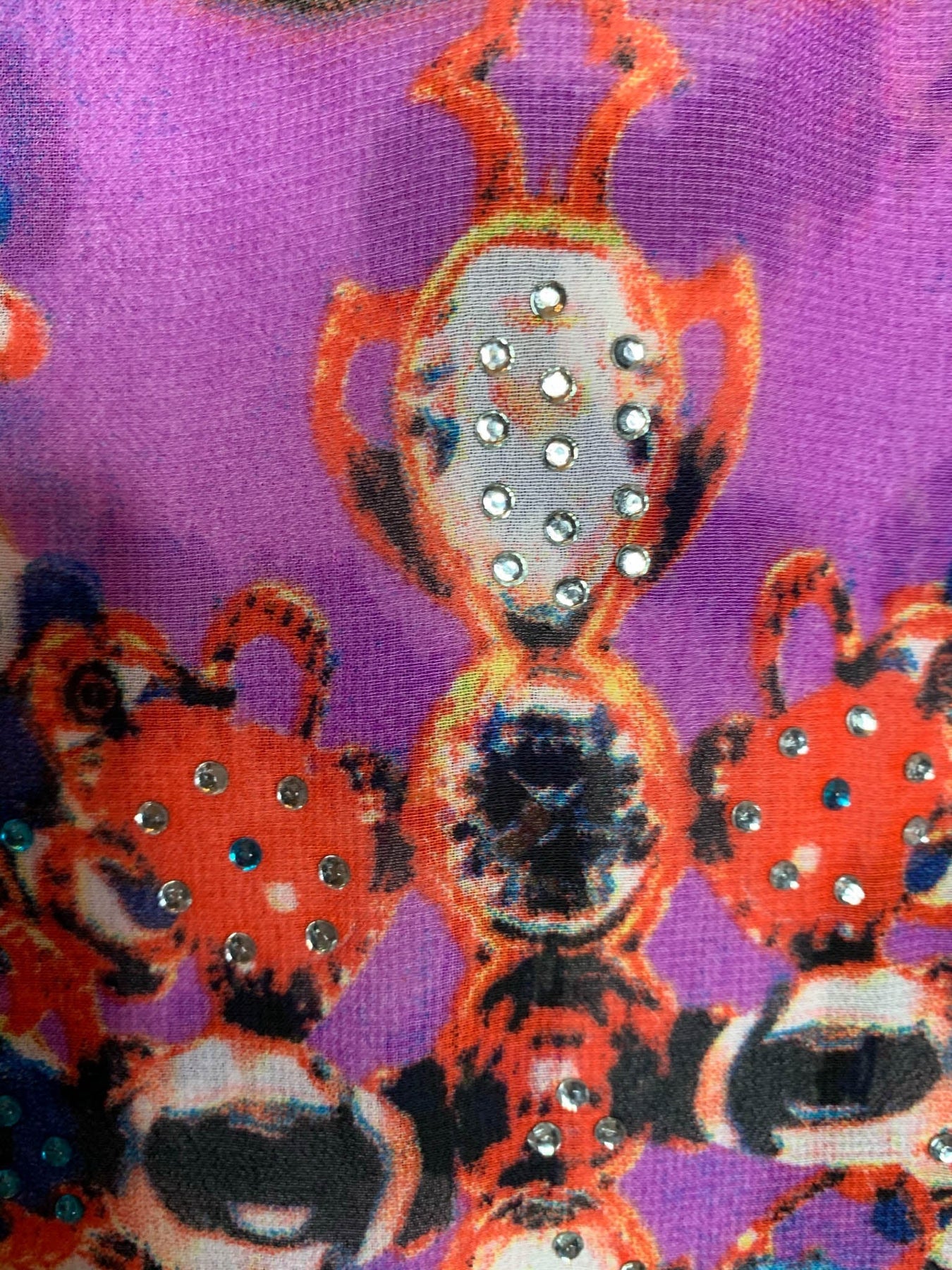 55% Silk 45% Polyester Hand Wash Cold Wash Imported Sheer See Thru Rhinestones Details