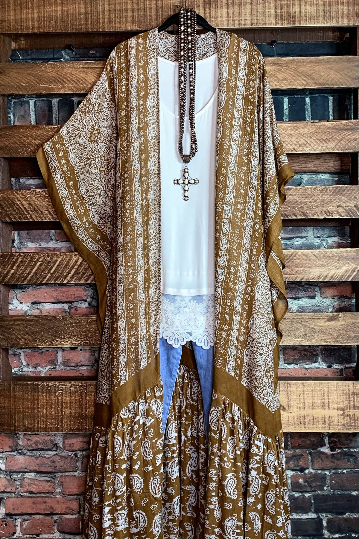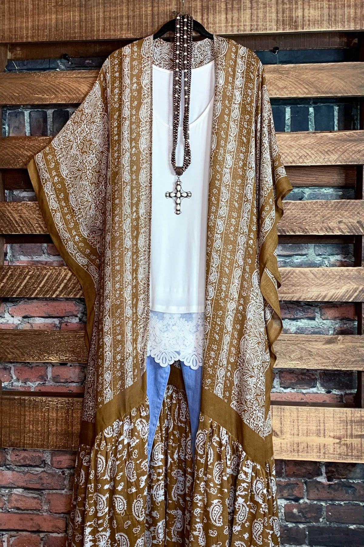 Le Bohemian Heart & Soul Oversized Maxi Kimono in Brown