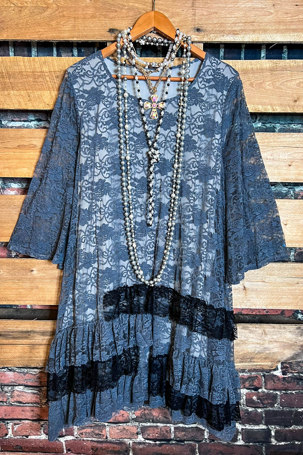 FULL OF GRACE GRAY LACE SLIP DRESS EXTENDER TOP