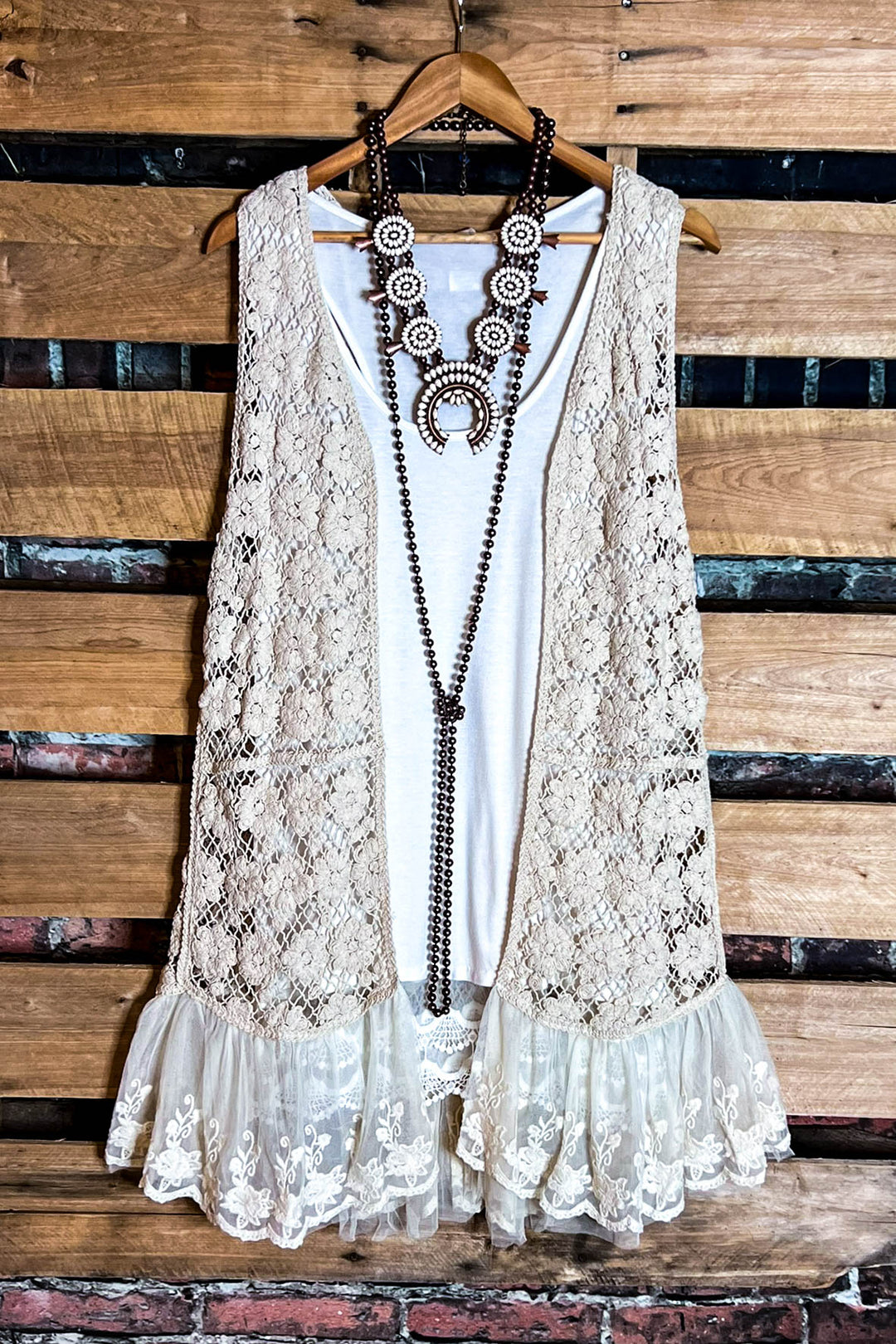 Keep It Authentic Natural Vintage Crochet & Lace Vest
