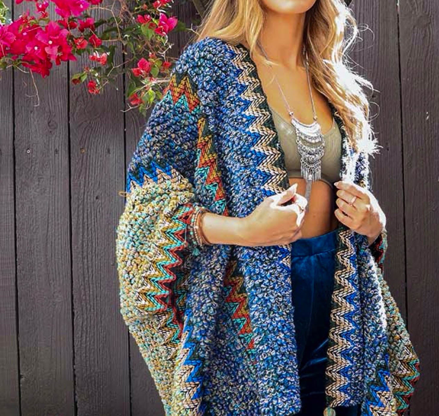 Authentic Beauty Bohemian Crochet Kimono in Blue & Multi-Color