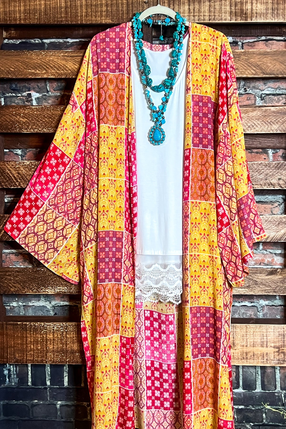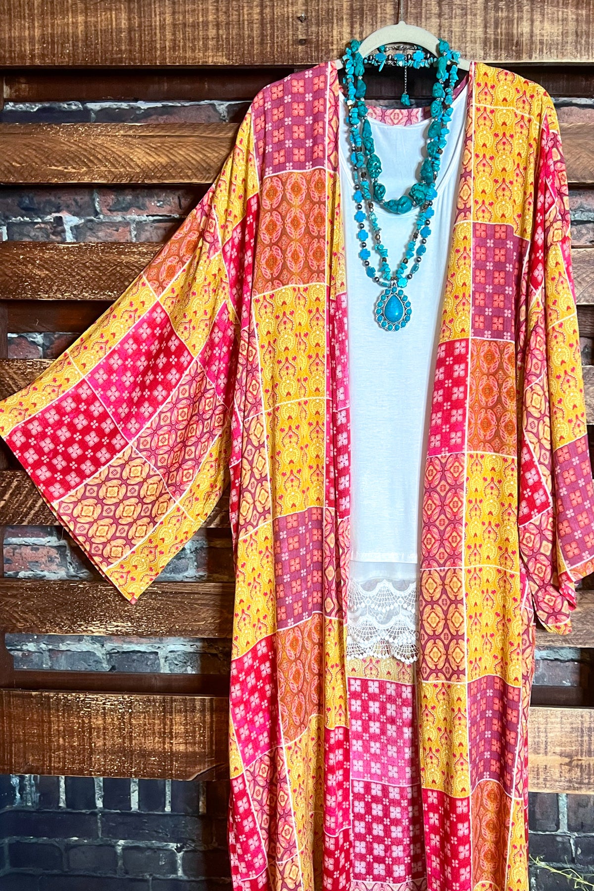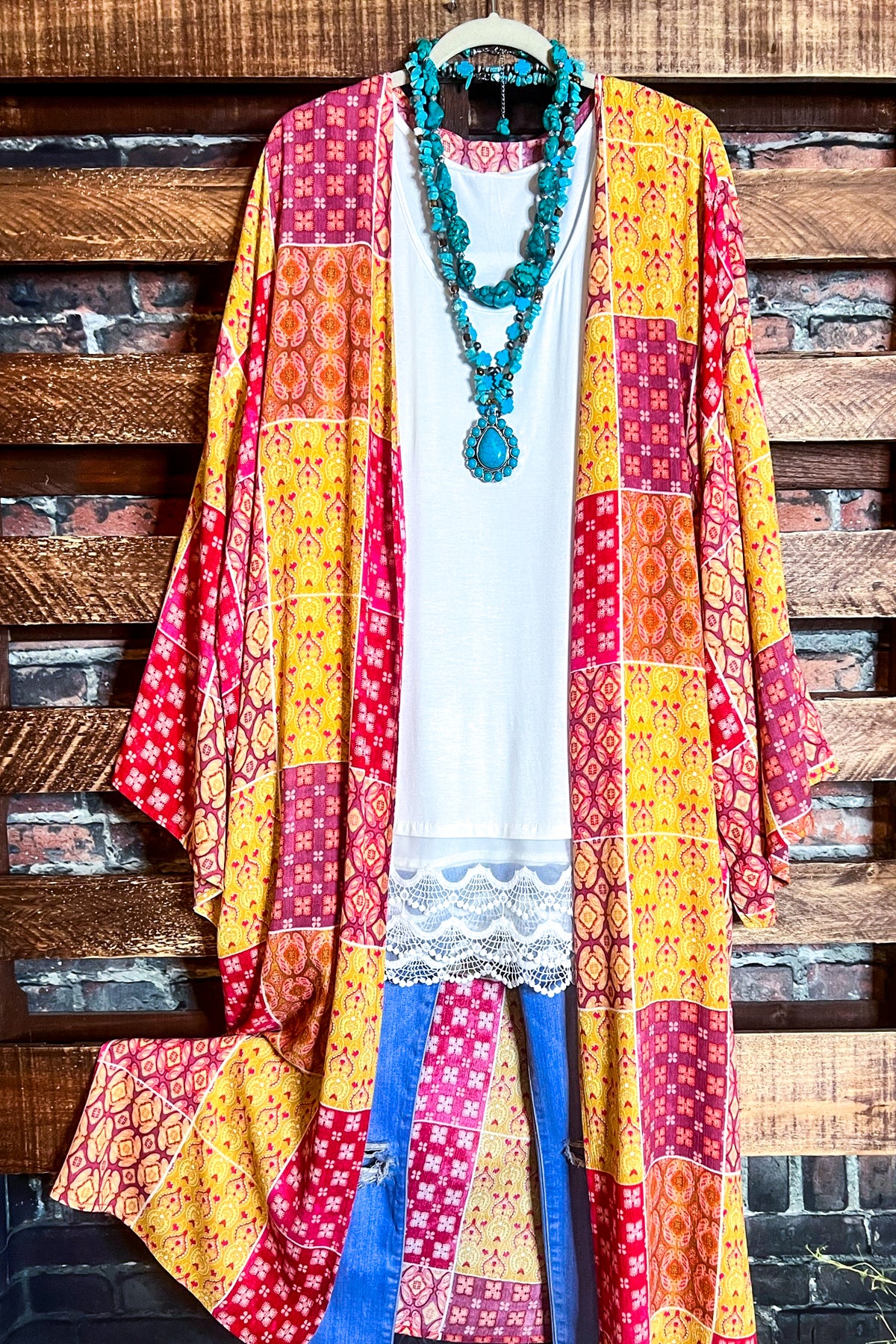 PARADISE COAST ESCAPE BOHO MAXI KIMONO IN MULTI-COLOR