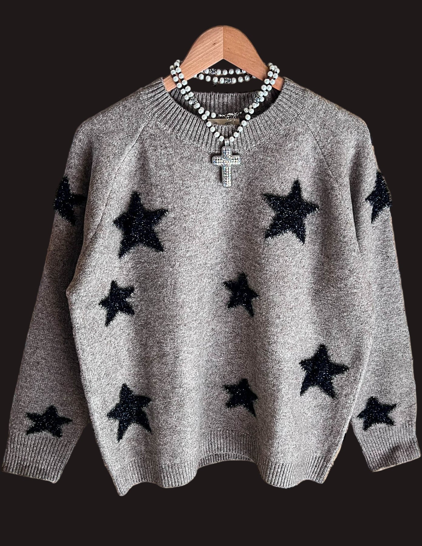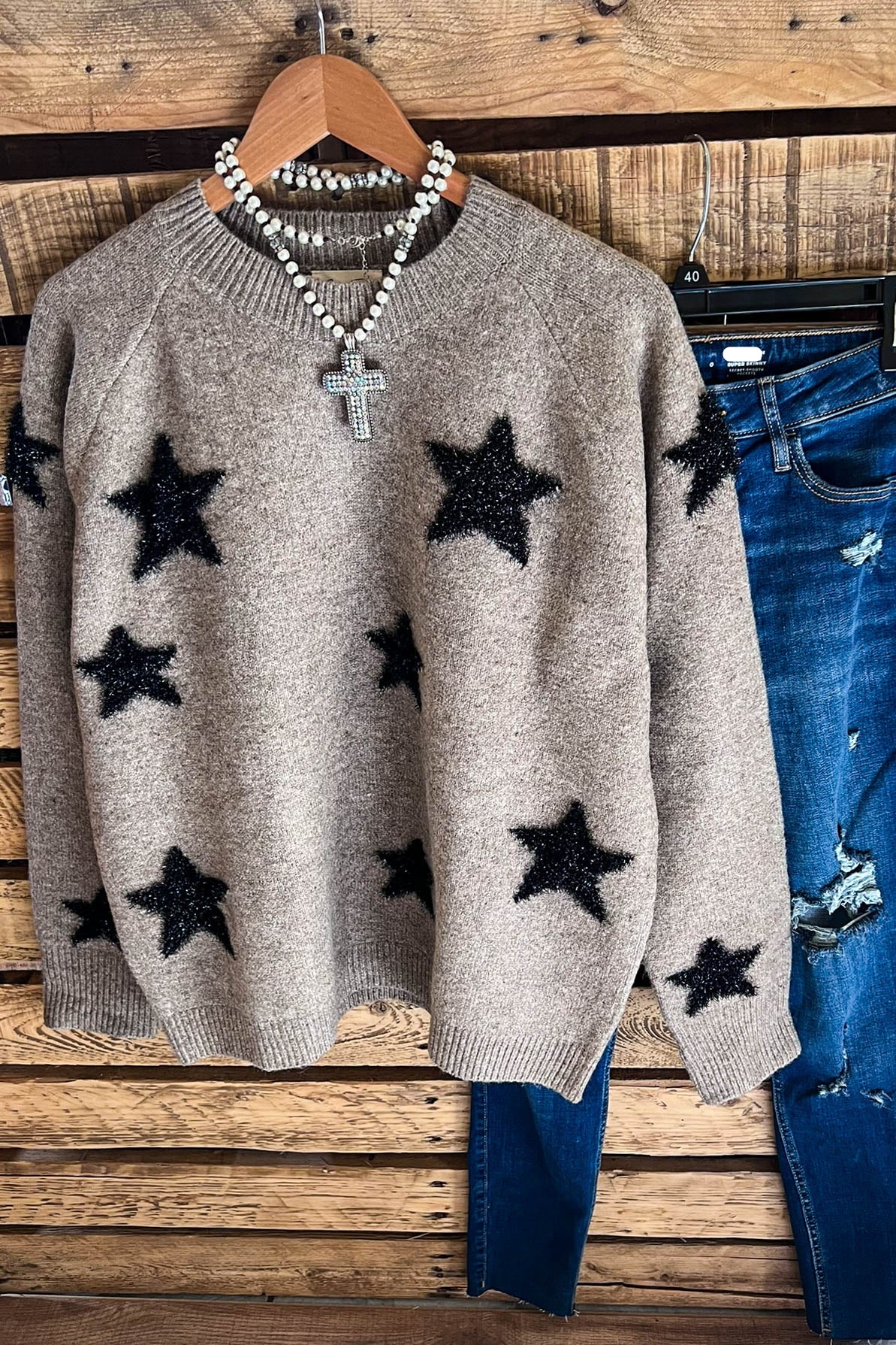 THE MAGIC STARS BOHO-CHIC PULLOVER SWEATER IN ASH MOCHA