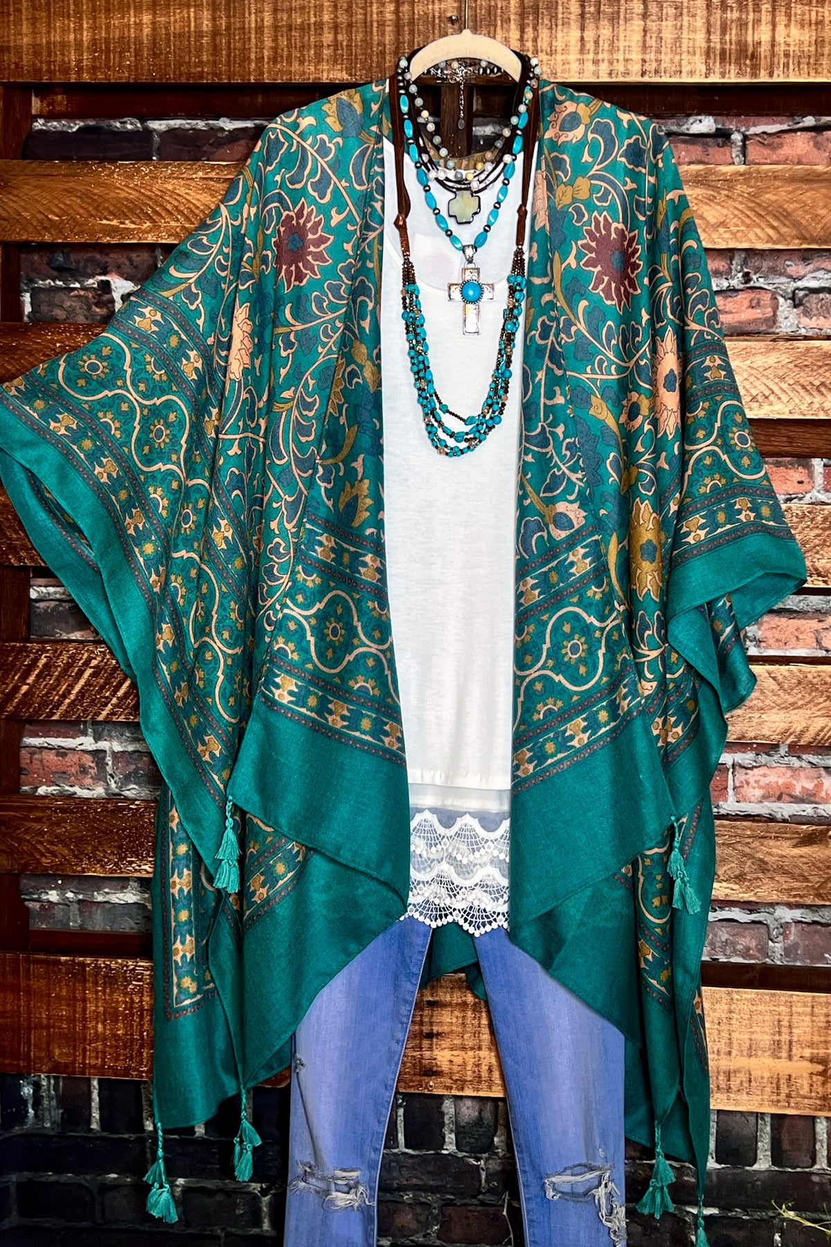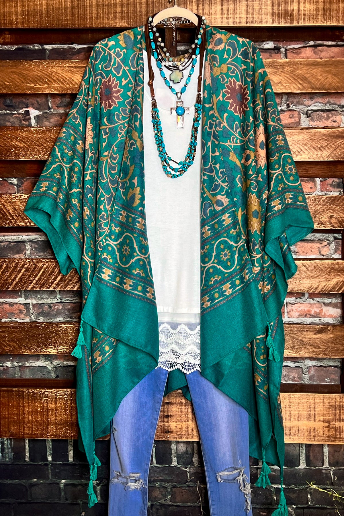 TICKETS TO PARADISE BOHO KIMONO IN EMERALD GREEN