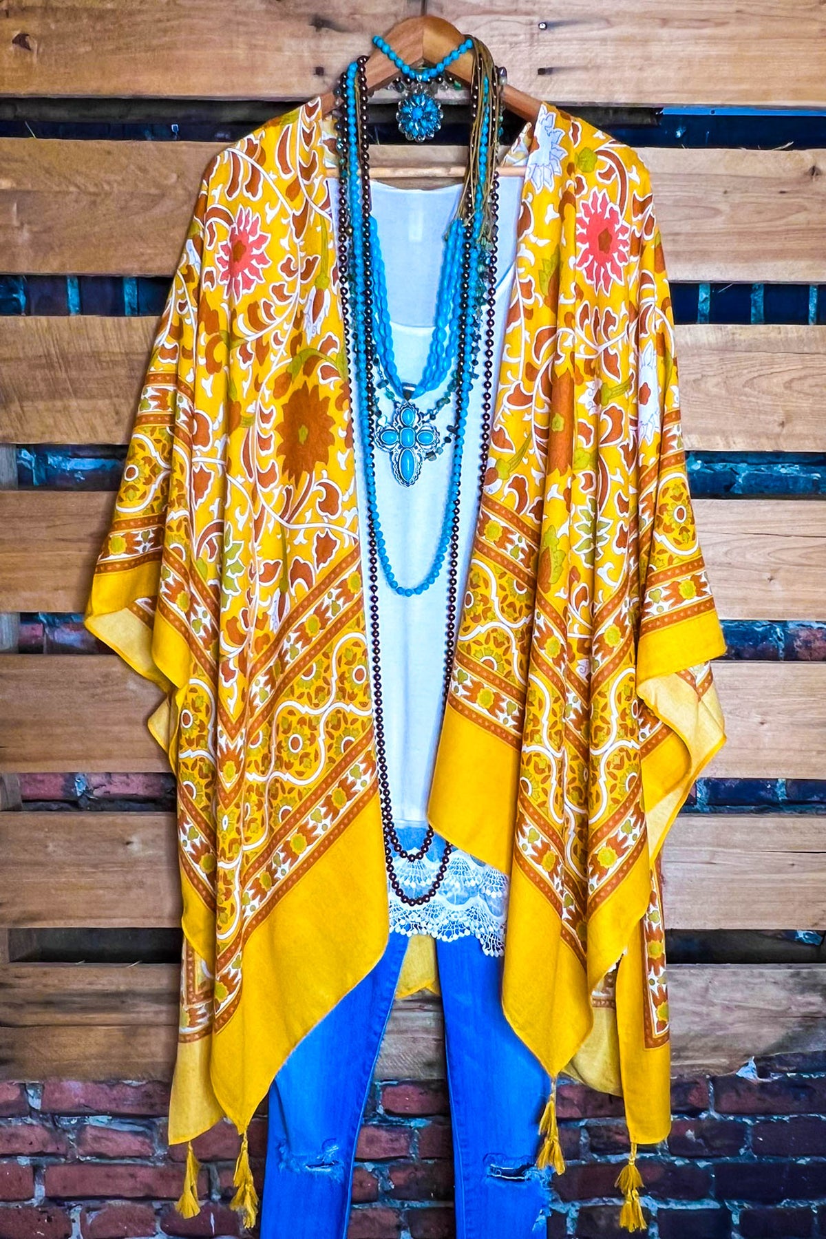 Bohemian Chic Kimono. Throw-on over anything, this kimono is the perfect addition for layering over casual outfits or as a cover-up.
