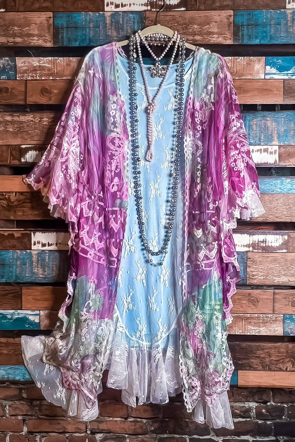 SEA BREEZE ESCAPE RESORT BLUE BOHO EMBROIDERED KIMONO