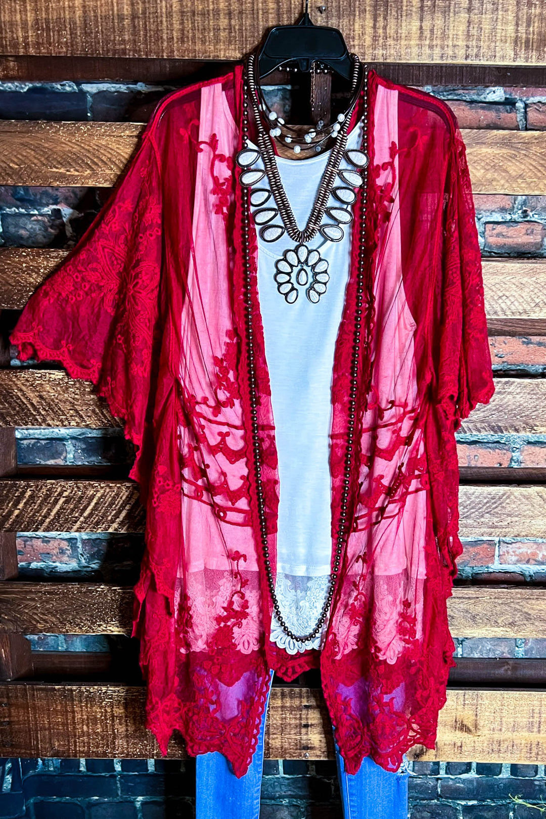 VINTAGE ANGEL FAB LACE KIMONO DUSTER IN RED