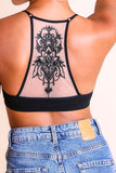 Tattoo Mesh Racerback Bralette No Adjustable Strap Heat Stamped
