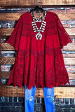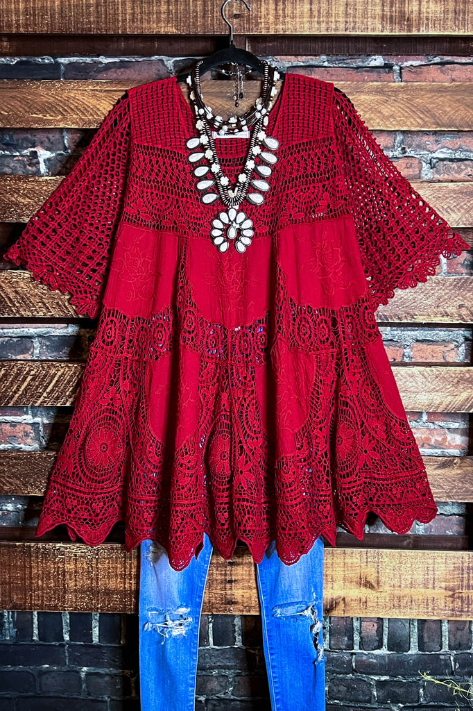 A FAIRYTALE PRETTY 100% COTTON CROCHET LACE RED RUBY
