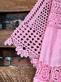 A FAIRYTALE PRETTY UNIQUE 100% COTTON PINK CROCHET LACE