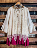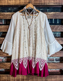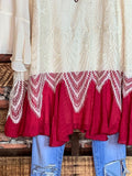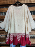ABSOLUTELY UNFORGETTABLE FAB LACE TUNIC IN BEIGE & CRIMSON