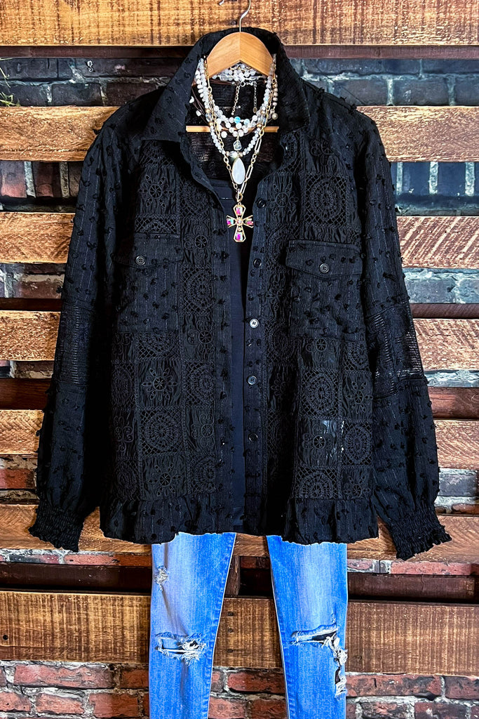 ANY EVENT STUNNING BLACK LACE SHIRT JACKET