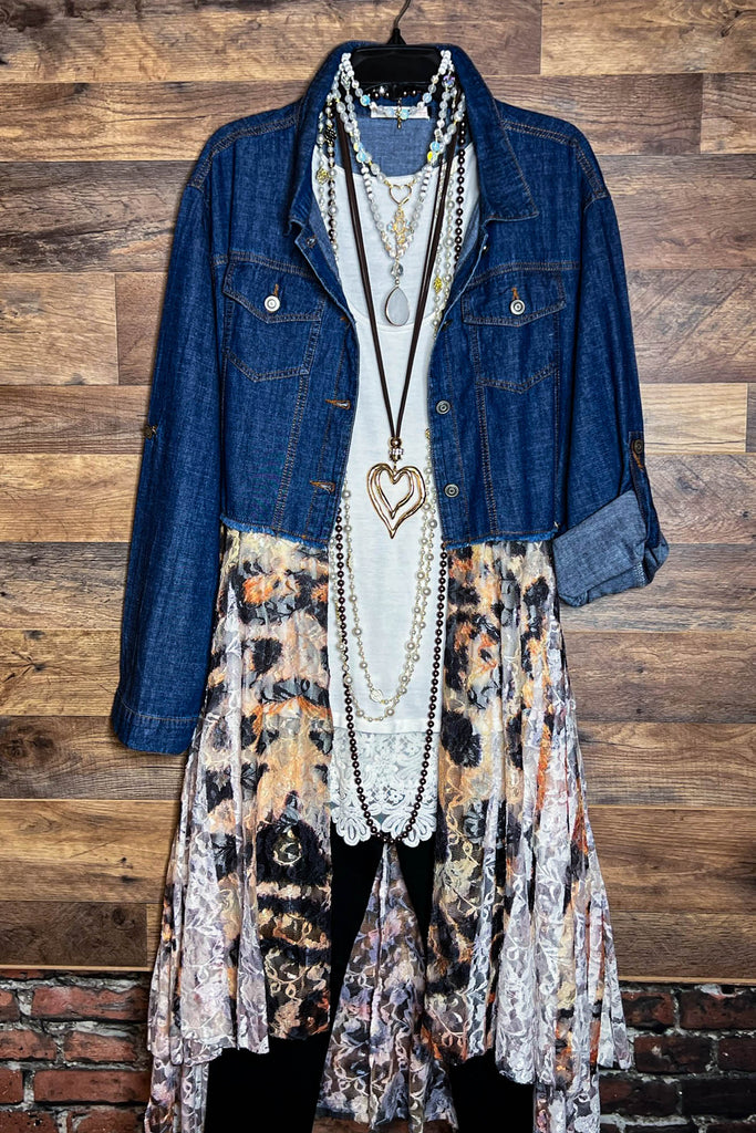 BORN TO BE FABULOUS LEOPARD PRINT LACE & DENIM STYLISH JACKET