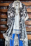 Fairytale Song Stars Lace & Suede Midi Jacket Cardi in Beige & Black