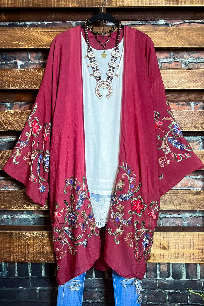 GO WITH GRACE PLUM FLORAL EMBROIDERED KIMONO