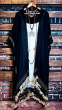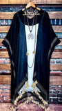 Going With The Wind Gauze Tassel Fringe Kimono in Black