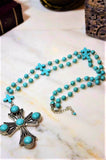 IT'S SO MYSTICAL VICTORIAN CROSS NECKLACE IN TURQUOISE