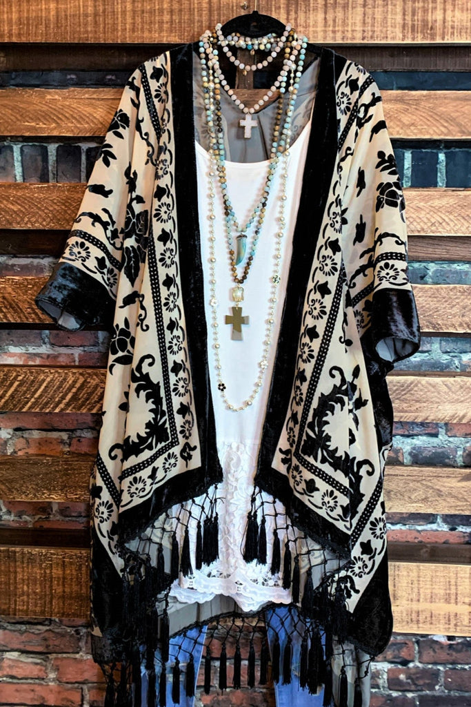 LA VIE BOHEME BLACK VELVET BURNOUT KIMONO