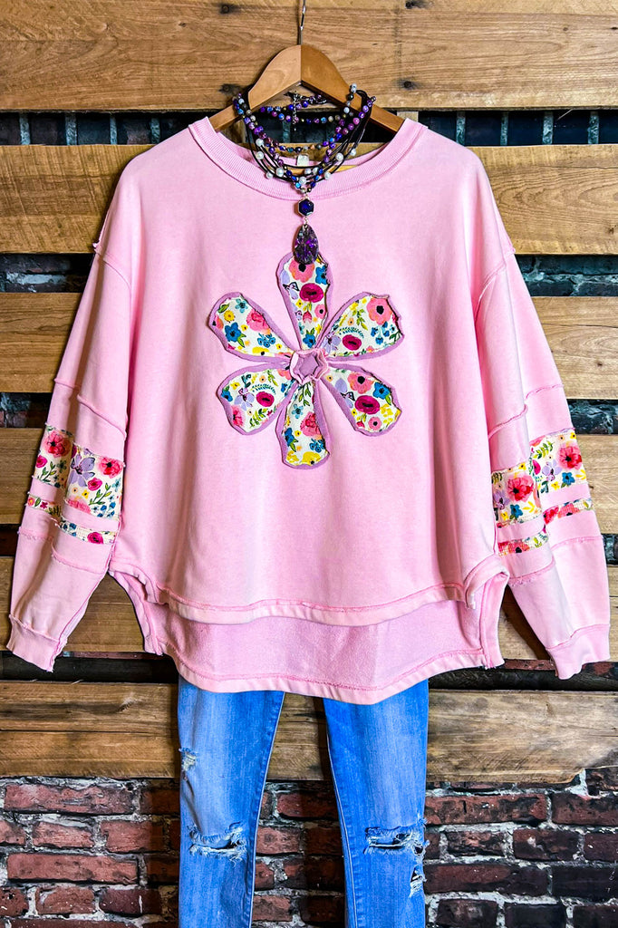 LET LOVE BLOSSOM BOHO COMFY SOFT SWEATSHIRT IN PINK