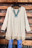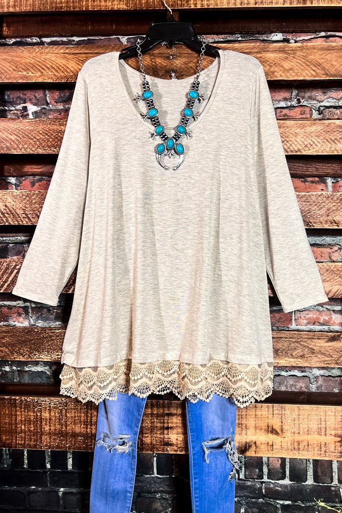 LET'S GO TO TOWN LOVELY LACE OATMEAL T-SHIRT TOP