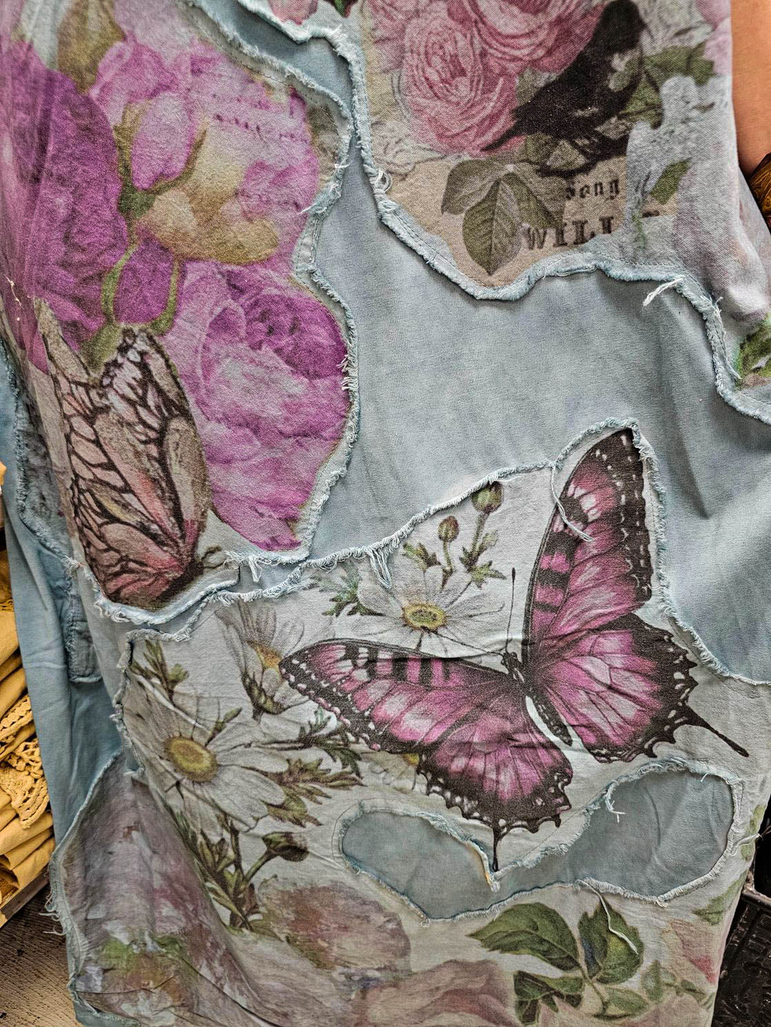 The artistic botanical and butterfly details give it a wearable-art feel, perfect for everything from casual days to dressed-up moments. Whether styled with boots, sandals, or statement jewelry, this dress transitions beautifully for any occasion.