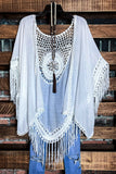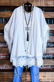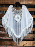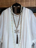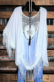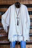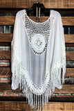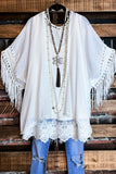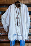 LIVING FREE BOHO CROCHET FRINGE KIMONO IN OFF-WHITE