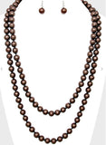 LONG PEARL BEAD NECKLACE SET IN BROWN MOCHA