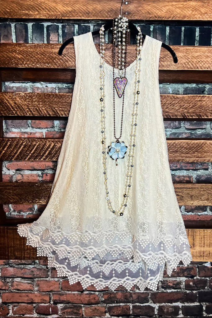 LOST IN LOVE BEIGE LACE TUNIC DRESS