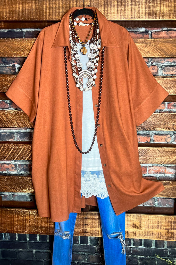 NATURAL BEAUTY BROWN RUST LINEN OVERSIZED TIMELESS SHIRT DRESS