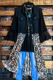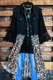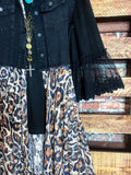 NEVER OUT OF STYLE BLACK DENIM & LACE LEOPARD FAB VEST