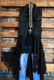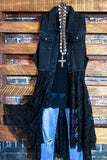 NEVER OUT OF STYLE BOHO DENIM & LACE VEST IN BLACK