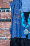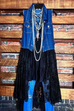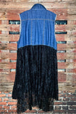 NEVER OUT OF STYLE FAB LONG VEST LACE BLACK & DENIM