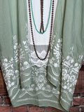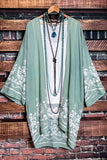 OUR ORIGINAL LOVE BOHO GAUZE FLORAL EMBROIDERED KIMONO IN SAGE