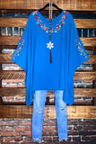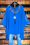 PRETTY PERFECTION EMBROIDERED OVERSIZED TUNIC PONCHO IN ATLANTIC BLUE