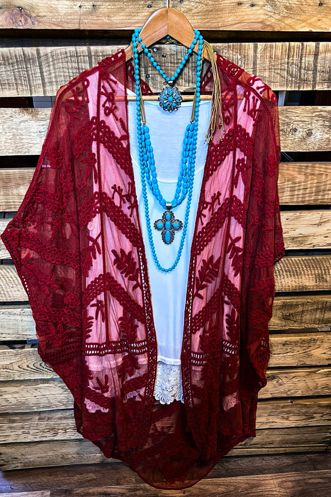 YOU'RE MY DREAM LACE RED RUST OVERSIZED DUSTER KIMONO