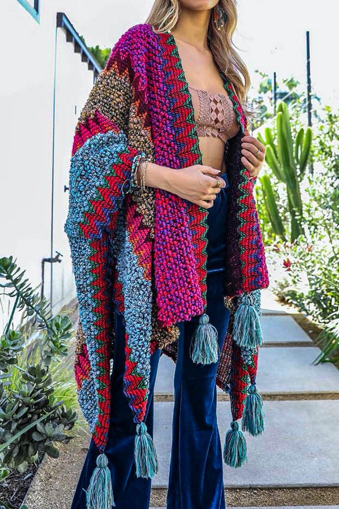 Authentic Beauty Crochet Kimono in Magenta and Multi-Color