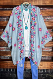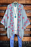 IT'S LOVE AT FIRST SIGHT SAGE FLORAL EMBROIDERED KIMONO