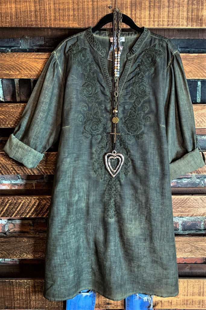 KEEP LOVE ALIVE OLIVE EMBROIDERED DRESS TUNIC
