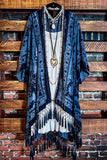 LA VIE BOHEME NAVY BLUE VELVET BURNOUT KIMONO