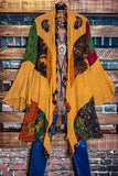 MAGIC OF NEW BEGINNINGS PEASANT KIMONO IN CAMEL & MULTI-COLOR