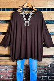 SIMPLE IS BETTER CASUAL T-SHIRT TUNIC IN BROWN