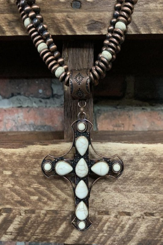 WHITE MOON GYPSY IVORY & MOCHA CROSS NECKLACE