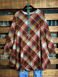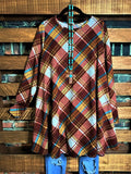 14-18 SIZE - PLAID SWEATER DRESS WITH POCKETS IN BRICK---SALE
