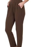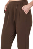 - Plus 7/8-Length ITY Pleated Waist Pants With Side Pockets - Elastic