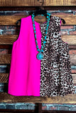 14-22 SIZE - DREAMS OF YOU FUCHSIA & LEOPARD PRINT TOP ---------- SALE