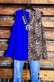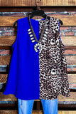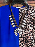 14-22 SIZE - DREAMS OF YOU ROYAL BLUE & LEOPARD PRINT TOP -------- SALE