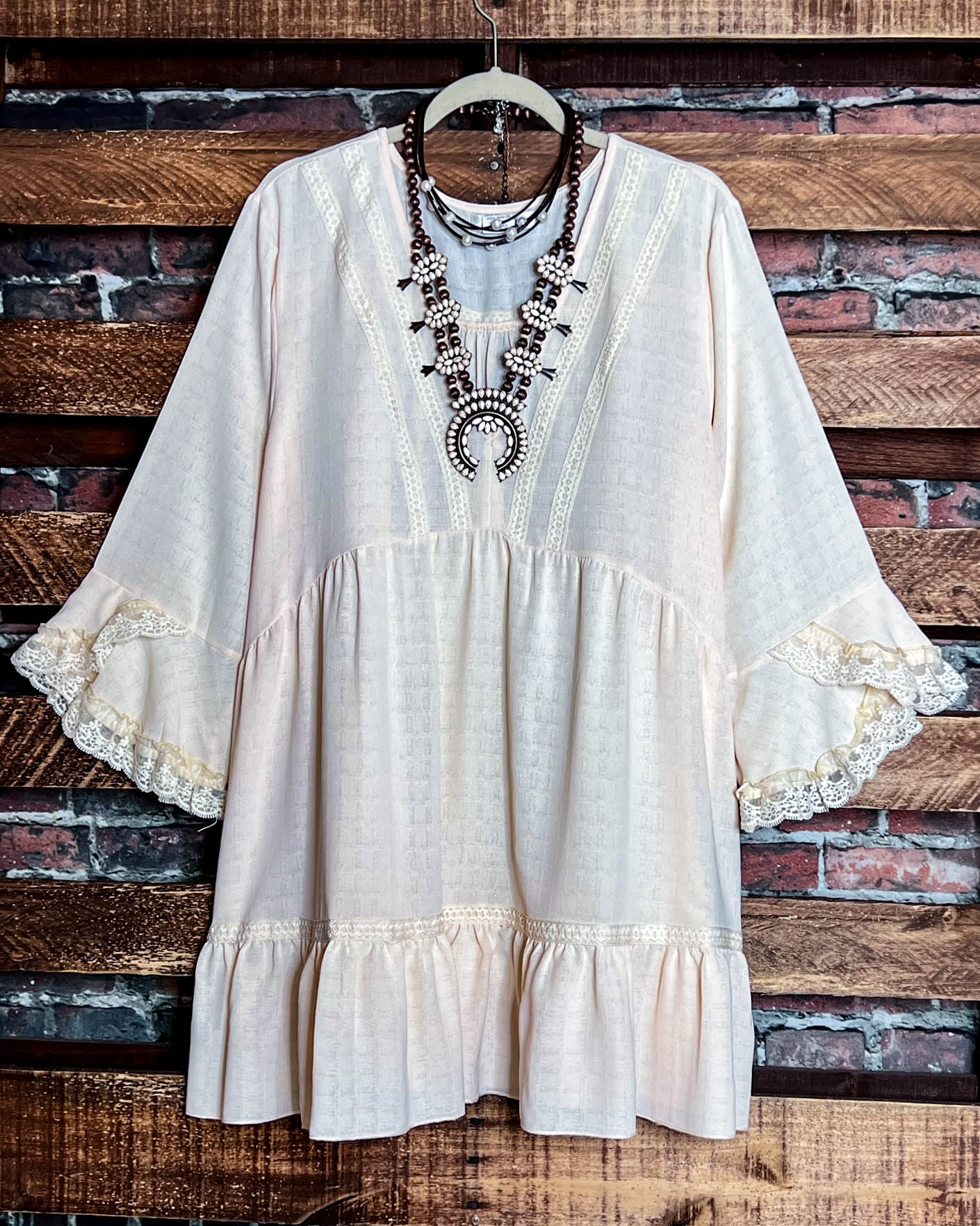 16-18 SIZE - BEIGE LACE TRIM DRESS TUNIC----------SALE
